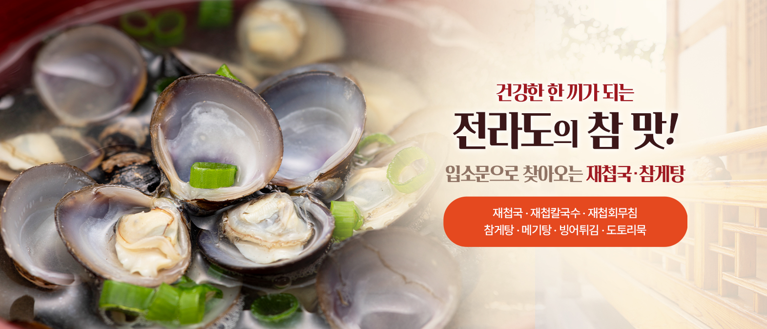 작은 재첩을 정성껏 끓여낸 맑고 시원한 국물요리로, 깔끔한 맛이 일품입니다.
